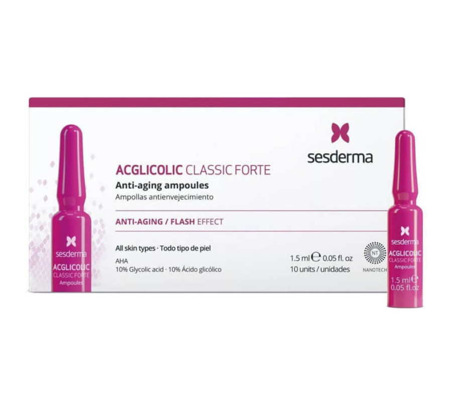 Ампули з гліколевою кислотою проти старіння Acglicolic Classic Forte Anti-Aging Ampoules Sesderma, 10x1.5 мл