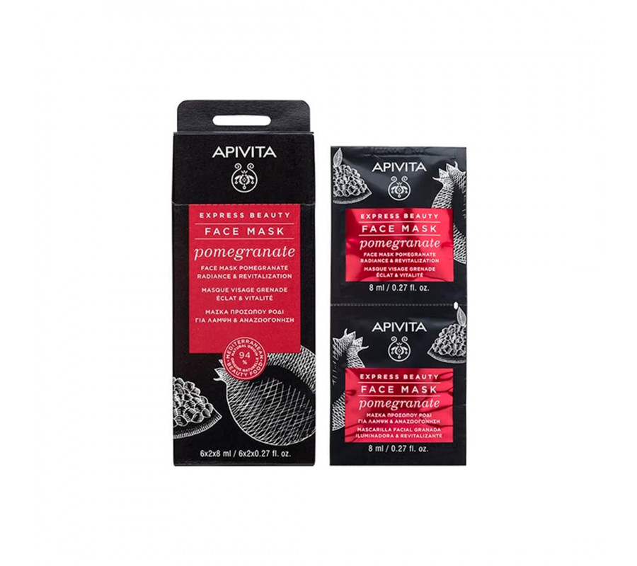 Apivita Маска для оздоровлення і сяйва шкіри з гранатом Express Beauty Radiance and Revitalizing Mask, 2x8 мл