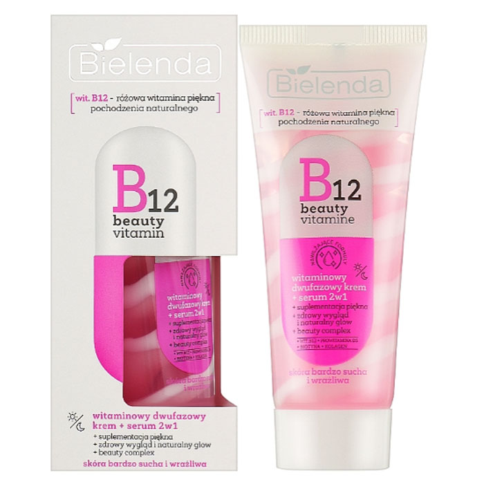 B12 BEAUTY VITAMIN Вітамінний 2-фазний крем + сироватка 2в1 для дня та ночі Bielenda, 45г