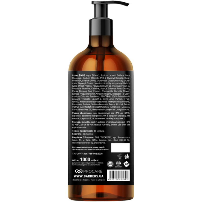 Barbers Тонізуючий шампунь для чоловіків New York 1000 мл — купити в Україні