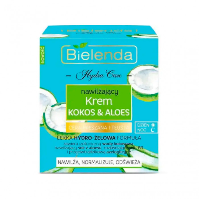 Bielenda Крем для обличчя Hydra Care зволожуючий Кокос та Алое для комбінованої та жирної шкіри, 50 мл