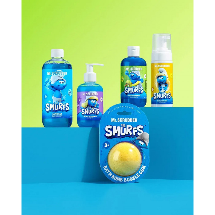 Зробіть час у ванній незабутнім разом із яскравою бомбочкою з лімітованої колекції The Smurfs від Mr.SCRUBBER! Засіб з ароматом солодкої жувальної гумки Bubble gum миттєво забарвлює воду у насичений колір, створюючи мільйони шипучих бульбашок та наповнюючи кімнату атмосферою радості.