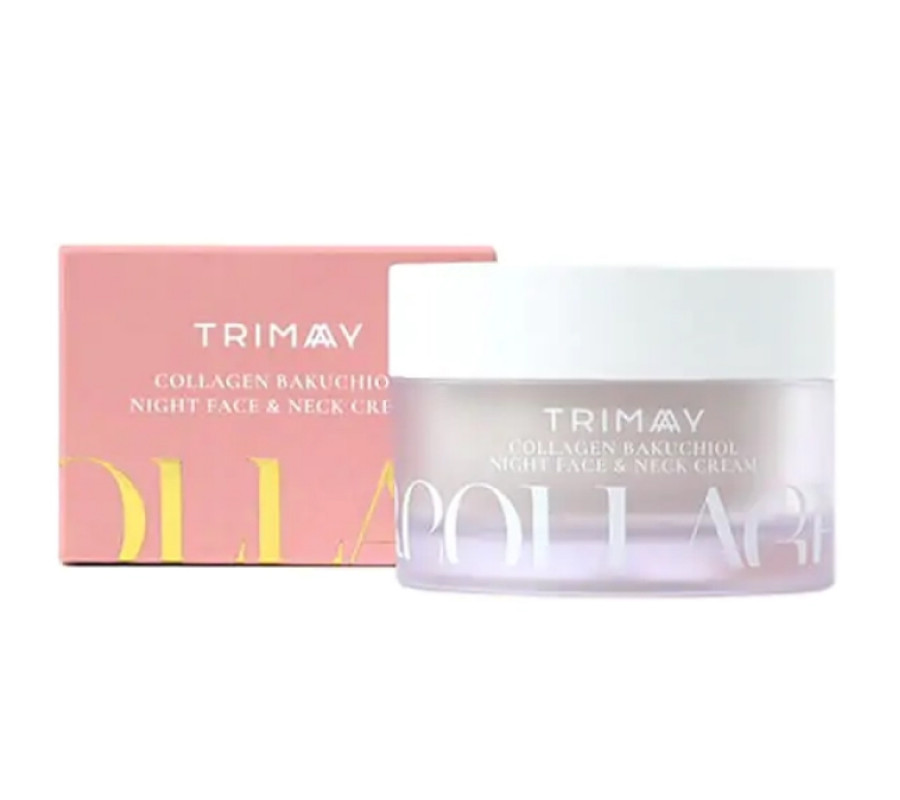 Нічний антивіковий крем для обличчя та шиї з бакчіолом Collagen Bakuchiol Night Face & Neck Cream Trimay, 50 м