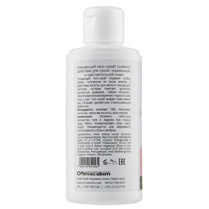 Очищувальний гель-скраб для сухої й чутливої шкіри Onmacabim, 150 мл