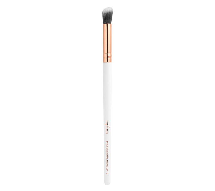 Пензлик для розтушовування тіней скошений F09 Topface золотий, молочний , 1шт