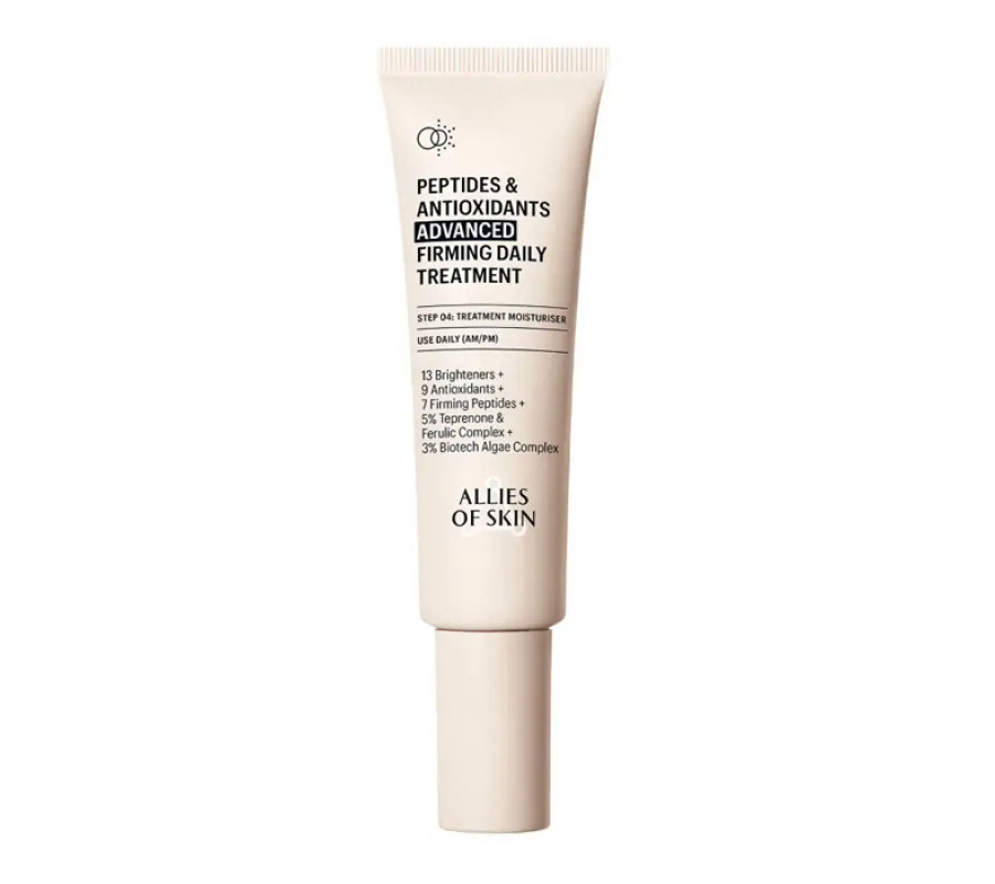 Оновлений зволожуючий крем-бестселер Peptides & Antioxidants Advanced Firming Daily Treatment від Allies of Skin має вдосконалену формулу з більшою концентрацією активних інгредієнтів (понад 18%). Засіб збагачений пептидами для підвищення пружності, церамідами для відновлення ліпідного бар’єру та компонентами для освітлення тону. Крем забезпечує комплексний антивіковий догляд, вирівнює текстуру, усуває зморшки та підсилює природне сяйво шкіри.
