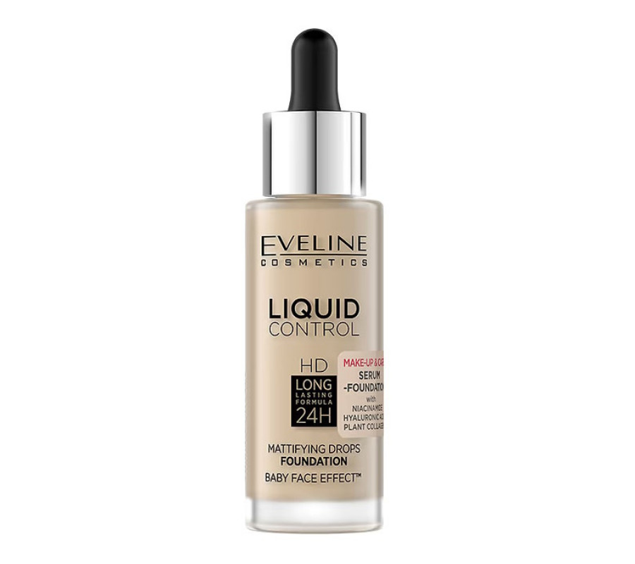 Рідка тональна основа Liquid Control HD Mattifying Drops Foundation Eveline Cosmetics 015 - Light Vanila, 32 м