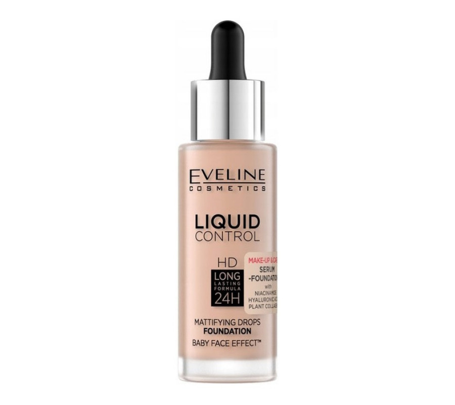 Рідка тональна основа Liquid Control HD Mattifying Drops Foundation Eveline Cosmetics 003- Ivory Beige, 32 мл
