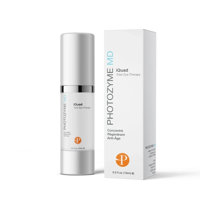 Профилактика и коррекция всех ключевых эстетических проблем, характерных для периорбитальной зоны в одной мощной формуле Photozyme MD. Крем для кожи вокруг глаз iQuad Total Eye Therapy сочетает эксклюзивную комбинацию энзимов, которые восстанавливают фотоповрежденную кожу и обеспечивают дополнительную защиту клеток от будущих повреждений, несколько форм ретинола, пептиды, витамины, направленные на устранение темных кругов, снижение воспалений, отеков, повышение упругости.
