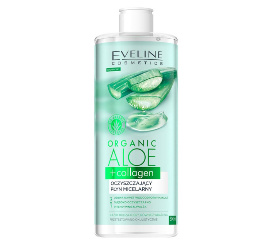 Мицеллярная вода из алоэ вера Organic Aloe Vera + Collagen Eveline Cosmetics, 500 мл