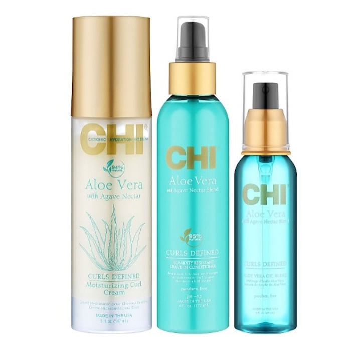 Состав набора: Гель для контроля кудрей — CHI Aloe Vera Control Gel, 147 мл + Спрей для восстановления кудрей — CHI Aloe Vera Curl Reactivating Spray, 177 мл + Масло для волос с алоэ вера — CHI Aloe Vera Oil, 89 мл