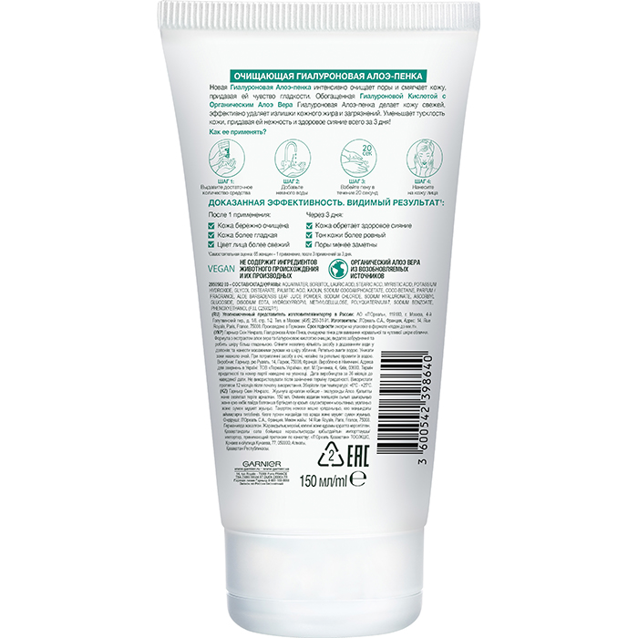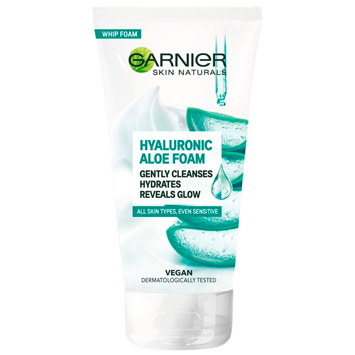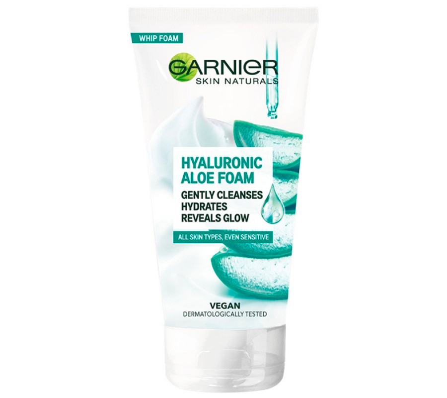 Очищающая гиалуроновая алоэ-пенка для умывания нормальной и чувствительной кожи лица Garnier, 150 мл