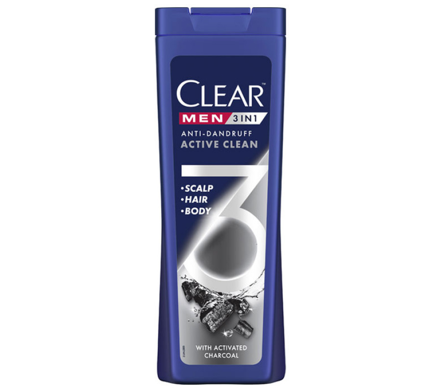 Шампунь, бальзам-ополіскувач, гель для душу для чоловіків 3 в 1 "Очищення з активованим вугіллям" Clear, 360 м
