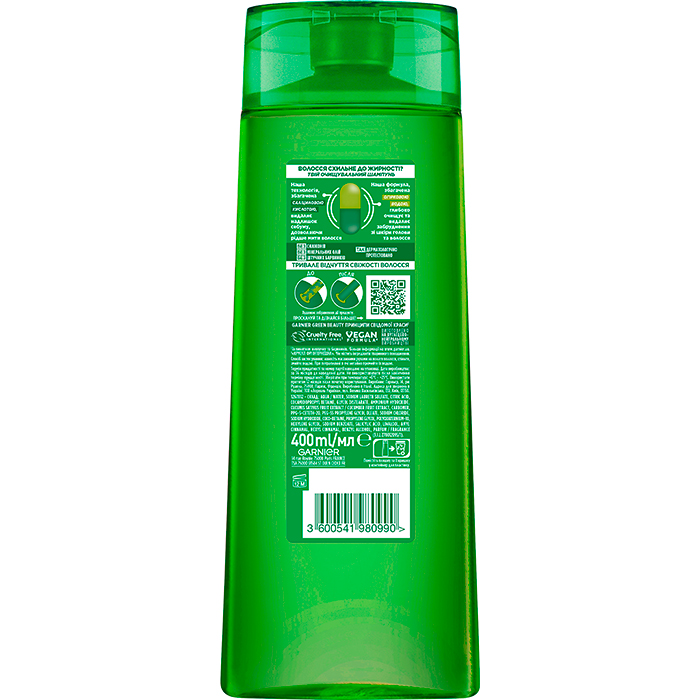 Шампунь для волосся "Заряд свіжості" для волосся, схильного до жирності Garnier Fructis, 400 мл
