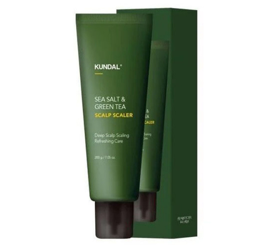 Скраб для шкіри голови "Sea Salt & Green Tea" Scalp Scaler Herb Mint KUNDAL, 200 мл