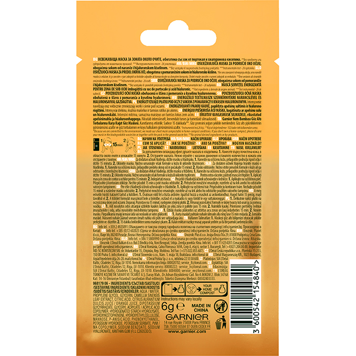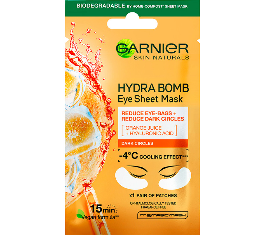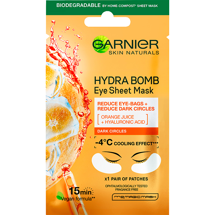 Тканинні патчі під очі "Зволоження + Свіжий погляд" з апельсиновим соком і гіалуроновою кислотою Garnier, 6 г