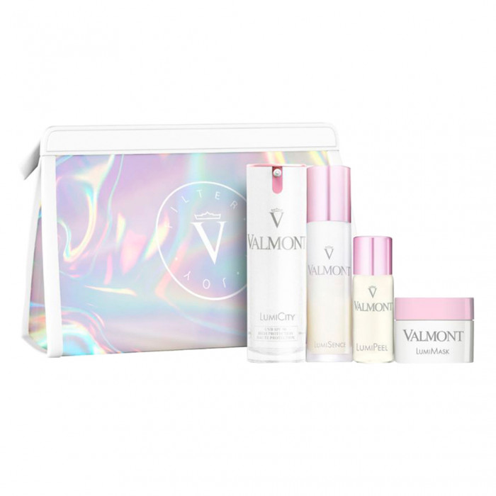 Набір косметики Valmont The Luminosity Experience містить продукти для догляду за жирною, комбінованою та тьмяною шкірою обличчя: