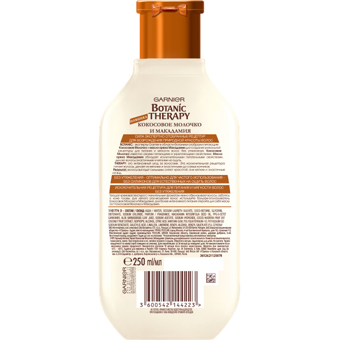 Живильний шампунь "Кокосове молочко і макадамія" для нормального і сухого волосся Garnier Botanic Therapy, 250