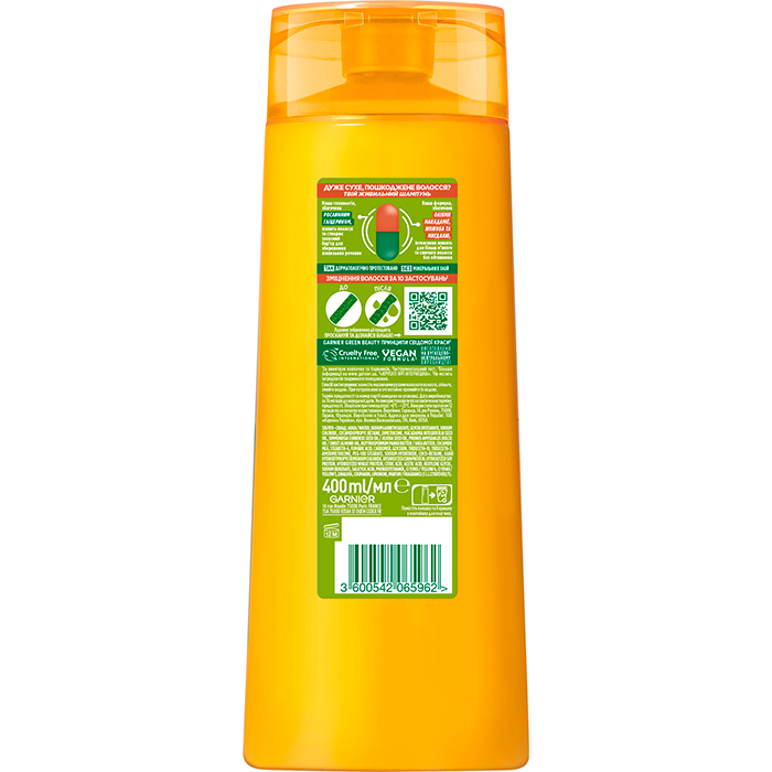 Живильний шампунь-масло для дуже сухого волосся "Потрійне відновлення" Garnier Fructis, 400 мл