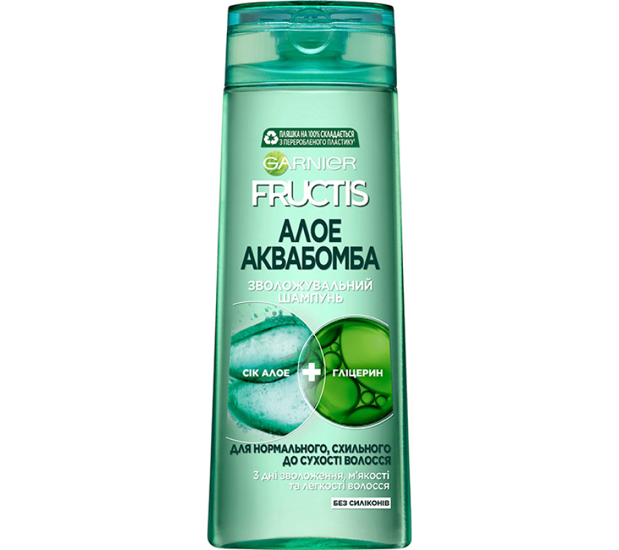 Зміцнюючий шампунь для нормального волосся "Алое Аква Бомба" з рослинним гліцерином і алое Garnier Fructis, 25