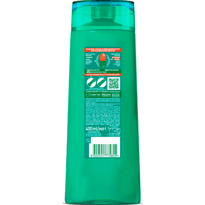 Зміцнюючий шампунь "Ріст на повну силу" для ослабленого волосся Garnier Fructis, 400 мл